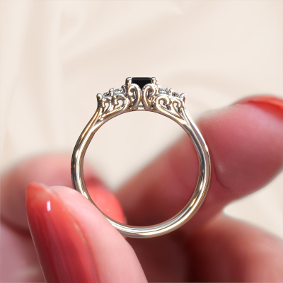 Dieser Verlobungsring aus 14 Karat Weißgold heißt Myrna EME. Dieser filigrane Weißgold Verlobungsring mit 0.948 crt Schwarz Diamant ist ein wahres Kunstwerk! Ein wunderschön geschmücktes Design aus komplizierten Drähten. Mit Hingabe, Geduld und äußerster Präzision werden unsere erfahrenen Juweliere einen Ring nur für Sie entwerfen. Die Verzierungen mit kleinen Drähten werden von Hand in Perfektion gefertigt. Das ist ein langwieriger Prozess, der Schweißen, Werkzeug und Polieren umfasst, bis der erfahrene Juwelier mit dem Ergebnis zufrieden ist: Ein perfekter, auffälliger Ring, der ihn mit Freude zum Strahlen bringt. Deshalb ist der Vintage, filigrane Verlobungsring ein außergewöhnliches Geschenk, um die Liebe Ihres Lebens zu verwöhnen. Ein handgemachter, einzigartiger und personalisierter Ring, den man jemandem in diesem besonderen Moment geben kann, wenn man die eine Frage stellt. Ist das nicht wunderbar? Jedes Schmuckstück ist einzigartig in jeder Hinsicht! Einfach nach Ihren Wünschen anzupassen.Mit unserer modernen Technik können wir Schmuckstücke von höchster Qualität mit größter Sorgfalt für Sie entwerfen und anpassen. Unsere Verlobungsringe sind immer um 30 Prozent günstiger als bei anderen Juwelieren. Wir fertigen Verlobungsringe auf Bestellung, also müssen wir keine großen Lager unterhalten. Wenn Sie ein bestimmtes Budget haben, beraten wir Sie gerne entsprechend.Haben Sie irgendwo einen bestimmten Verlobungsring gefunden, den Sie Ihrem Liebsten schenken möchten? Sie können uns gerne sagen, was Sie wollen und wir werden Ihr Design in einen Einzigartigen Vintage Verlobungsring verwandeln. Sie können die Entwicklungen Ihres Ringdesigns verfolgen, da wir 3D-Zeichnungen verwenden. Das gibt Ihnen eine realistische Vorschau, wie Ihr Design aussehen wird. Sie können auch einen Dummy vorbestellen. Ein Dummy ist ein Kunststoffring, der nach Ihrem Ringdesign gestaltet werden kann. Sie können ihn anprobieren und prüfen, ob seine Breite und Größe für Sie geeignet sind. Wir senden Ihnen gerne ein unverbindliches Angebot zu einem fairen Preis/Leistungsverhältnis. Sie werden in Anbetracht der Qualität des Rings und der Edelsteine überrascht sein.Um es einfacher zu machen, bieten wir eine kostenlose 30-tägige Rücksendung.