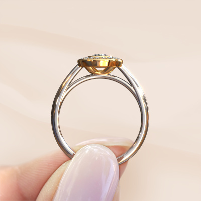 Der oben gezeigte Verlobungsring wird Noud 1 RND genannt. Es ist ein Halo Ring, da er einen zentralen Edelstein und ein Band mit Pavé-Fassung hat. Der 14 Karat Weißgold ring ist mit einem 0.25 crt rund Diamant-Mittelstein besetzt und um ihn herum eine Pavé-Fassung mit Diamanten. Was diesen traditionell, Weißgold Halo Ring besonders macht, sind die kleineren Steine, die den zentralen Stein umschließen. Dieser wunderschöne Verlobungsring wird als Halo Ring bezeichnet, da die kleineren Edelsteine dem zentralen Stein einen Lichthof geben. Damit die kleineren Steine den Mittelstein verstärken, müssen sie so platziert werden, dass keine Lichteinflüsse auftreten. Und hier kommen unsere erfahrenen Goldschmiede ins Spiel. Jeder einzelne Stein wird sorgfältig von Hand in den Ring gesetzt. Während der Herstellung wird der Lichteinfall ständig überprüft. So können wir sicherstellen, dass der spezielle Lichtkranz noch sichtbar ist. Am Ende erhalten Sie einen einzigartigen Verlobungsring mit einem Diamanten Ihrer Wahl in der Mitte. Sie können sich die Wirkung eines solchen Ringes vorstellen, wenn Sie ihn an ihrem besonderen Tag für sie zum Leuchten bringen. Durch die Kombination modernster Technik mit uralter Handwerkskunst können wir alle Verlobungsringe in unserem eigenen Studio anfertigen. Jedes Schmuckstück wird auf Anfrage gefertigt. Das ist vorteilhaft, weil wir Ihnen dadurch einen Preis anbieten können, den Sie nirgendwo anders finden.Haben Sie einen bestimmten Ring im Sinn? Eines, dass Sie irgendwo gesehen haben. Bitte zögern Sie nicht, uns zu sagen, was Sie wollen und wir werden Ihr Design in einen Einzigartigen Verlobungsring verwandeln. Sie können die Entwicklungen Ihres Ringdesigns verfolgen, da wir 3D-Zeichnungen verwenden. Das gibt Ihnen eine realistische Vorschau Ihres Designs. Wir senden Ihnen gerne ein unverbindliches Angebot zu einem fairen Preis/Leistungsverhältnis. Es wird Sie erstaunen.Um es einfacher zu machen, bieten wir eine kostenlose 30-tägige Rücksendung.