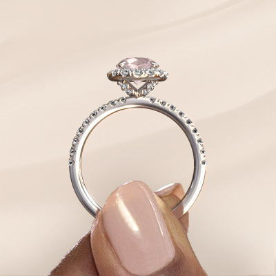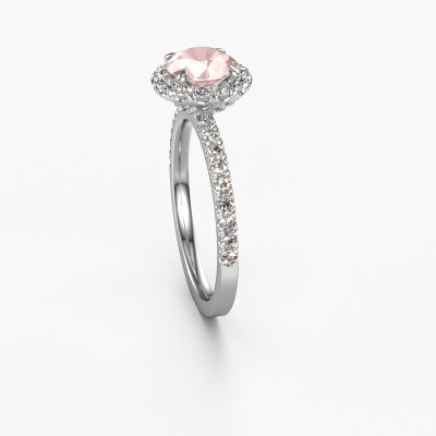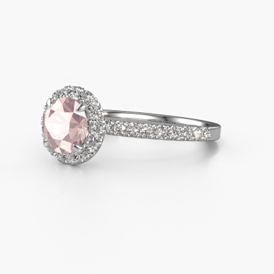 Der oben gezeigte Verlobungsring wird Miranda rnd genannt. Es ist ein Halo Ring, da er einen zentralen Edelstein und ein Band mit Pavé-Fassung hat. Der 14 Karat Weißgold ring ist mit einem 6.5 mm rund Morganit Champagner-Mittelstein besetzt und um ihn herum eine Pavé-Fassung mit Lab grown Diamant. Was diesen exklusive, Weißgold Halo Ring besonders macht, sind die kleineren Steine, die den zentralen Stein umschließen. Dieser wunderschöne Verlobungsring wird als Halo Ring bezeichnet, da die kleineren Edelsteine dem zentralen Stein einen Lichthof geben. Damit die kleineren Steine den Mittelstein verstärken, müssen sie so platziert werden, dass keine Lichteinflüsse auftreten. Und hier kommen unsere erfahrenen Goldschmiede ins Spiel. Jeder einzelne Stein wird sorgfältig von Hand in den Ring gesetzt. Während der Herstellung wird der Lichteinfall ständig überprüft. So können wir sicherstellen, dass der spezielle Lichtkranz noch sichtbar ist. Am Ende erhalten Sie einen einzigartigen Verlobungsring mit einem Morganit Champagner Ihrer Wahl in der Mitte. Sie können sich die Wirkung eines solchen Ringes vorstellen, wenn Sie ihn an ihrem besonderen Tag für sie zum Leuchten bringen. Mit unserer modernen Technik können wir Schmuckstücke von höchster Qualität mit größter Sorgfalt für Sie entwerfen und anpassen. Unsere Verlobungsringe sind immer um 30 Prozent günstiger als bei anderen Juwelieren. Wir fertigen Verlobungsringe auf Bestellung, also müssen wir keine großen Lager unterhalten. Wenn Sie ein bestimmtes Budget haben, beraten wir Sie gerne entsprechend.Haben Sie irgendwo einen bestimmten Verlobungsring gefunden, den Sie Ihrem Liebsten schenken möchten? Sie können uns gerne sagen, was Sie wollen und wir werden Ihr Design in einen Einzigartigen exklusive Verlobungsring verwandeln. Sie können die Entwicklungen Ihres Ringdesigns verfolgen, da wir 3D-Zeichnungen verwenden. Das gibt Ihnen eine realistische Vorschau, wie Ihr Design aussehen wird. Sie können auch einen Dummy vorbestellen. Ein Dummy ist ein Kunststoffring, der nach Ihrem Ringdesign gestaltet werden kann. Sie können ihn anprobieren und prüfen, ob seine Breite und Größe für Sie geeignet sind. Wir senden Ihnen gerne ein unverbindliches Angebot zu einem fairen Preis/Leistungsverhältnis. Sie werden in Anbetracht der Qualität des Rings und der Edelsteine überrascht sein.Um es einfacher zu machen, bieten wir eine kostenlose 30-tägige Rücksendung.