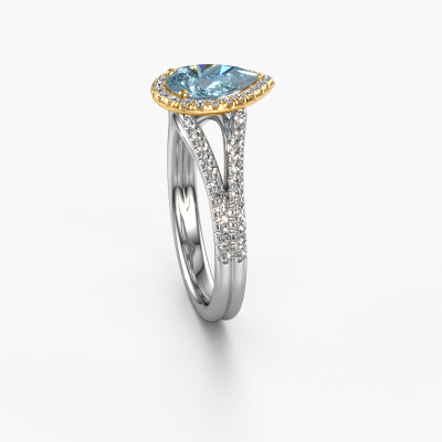 Der oben gezeigte Verlobungsring wird Verla pear 2 genannt. Es ist ein Halo Ring, da er einen zentralen Edelstein und ein Band mit Pavé-Fassung hat. Der 14 Karat Weißgold ring ist mit einem 8x6 mm tropfen blauer Labordiamant-Mittelstein besetzt und um ihn herum eine Pavé-Fassung mit Diamanten. Was diesen exklusive, Weißgold Halo Ring besonders macht, sind die kleineren Steine, die den zentralen Stein umschließen. Dieser wunderschöne Verlobungsring wird als Halo Ring bezeichnet, da die kleineren Edelsteine dem zentralen Stein einen Lichthof geben. Damit die kleineren Steine den Mittelstein verstärken, müssen sie so platziert werden, dass keine Lichteinflüsse auftreten. Und hier kommen unsere erfahrenen Goldschmiede ins Spiel. Jeder einzelne Stein wird sorgfältig von Hand in den Ring gesetzt. Während der Herstellung wird der Lichteinfall ständig überprüft. So können wir sicherstellen, dass der spezielle Lichtkranz noch sichtbar ist. Am Ende erhalten Sie einen einzigartigen Verlobungsring mit einem blauer Labordiamanten Ihrer Wahl in der Mitte. Sie können sich die Wirkung eines solchen Ringes vorstellen, wenn Sie ihn an ihrem besonderen Tag für sie zum Leuchten bringen. Nach Erhalt Ihrer Bestellung beginnen unsere Goldschmiede mit Leidenschaft den kreativen Prozess und fertigen Ihren Verlobungsring in unserem eigenen Studio. Da wir keine großen Lager haben, werden diese Kosten nicht an Sie weitergegeben. Unsere Preisgestaltung ist der Beweis dafür! Wir bieten Schmuck zum niedrigsten Preis, garantiert.Unsere Designer und Goldschmiede arbeiten jeden Tag zusammen und versuchen, neue Schmuckstücke zu kreieren. Vielleicht haben Sie irgendwo einen schönen, exklusive Verlobungsring gefunden, nach dem Ihr einzigartiger Ring gestaltet werden kann. Setzen Sie sich mit uns in Verbindung. Wir machen Ihnen ein Angebot, basierend auf einem fairen Preis/Leistungsverhältnis, das Sie begeistern wird.Um es einfacher zu machen, bieten wir eine kostenlose 30-tägige Rücksendung.