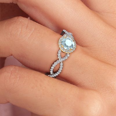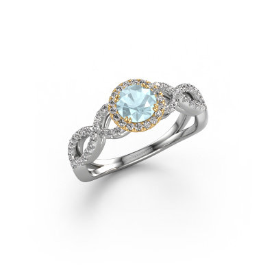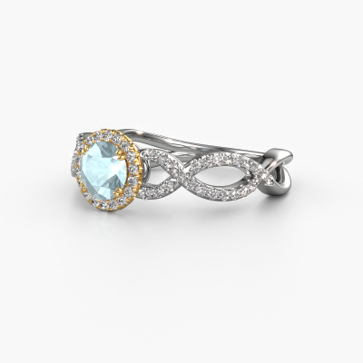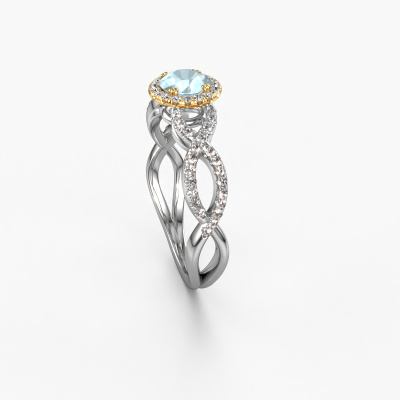 Der oben gezeigte Weißgold Verlobungsring wird Dionne rnd genannt. Es ist ein Pavé Solitär Ring, da er einen zentralen Edelstein und ein Band mit Pavé-Fassung hat. Der klassische Pavé Solitär Verlobungsring ist in der Kombination 14 Karat Weißgold mit Gold und ist mit einem rund 5 mm Aquamarin-Mittelstein besetzt und das Band hat eine Pavé-Fassung mit Diamanten. Jedes Schmuckstück wird von unseren Meister-Goldschmieden in unserem eigenen Studio für Sie gefertigt. Um den zentralen Stein noch mehr zu betonen, hat das Band eine Pavé-Fassung mit weiteren Aquamarin. Durch die offenen Krappen kann das Licht aus mehreren Winkeln auf den Aquamarin treffen und der Aquamarin-Ring funkelt noch mehr. Das obere Foto zeigt die leidenschaftlich handgefertigten Details des Rings. Die hohe Positionierung der Mittelstein ist ein echter Blickfang. Der perfekte Verlobungsring für das Kronjuwel Ihres Lebens!Da wir unsere eigenen Ringe entwerfen und liefern, können wir Ihnen einen Verlobungsring zu einem Preis anbieten, den Sie nirgendwo anders finden. Ein Ring wird auf Bestellung angefertigt, wodurch kein überschüssiges Material anfällt. So können wir Ihnen ein gutes Angebot zum besten Preis machen. Wir verstehen, dass es sich riskant anfühlt, Ihren Verlobungsring online zu kaufen. Jedoch helfen wir Ihnen gerne beim Designprozess unter Berücksichtigung Ihres Budgets.Haben Sie einen bestimmten Ring im Sinn? Eines, dass Sie irgendwo gesehen haben. Bitte zögern Sie nicht, uns zu sagen, was Sie wollen und wir werden Ihr Design in einen Einzigartigen Verlobungsring verwandeln. Sie können die Entwicklungen Ihres Ringdesigns verfolgen, da wir 3D-Zeichnungen verwenden. Das gibt Ihnen eine realistische Vorschau Ihres Designs. Wir senden Ihnen gerne ein unverbindliches Angebot zu einem fairen Preis/Leistungsverhältnis. Es wird Sie erstaunen.Um es einfacher zu machen, bieten wir eine kostenlose 30-tägige Rücksendung.