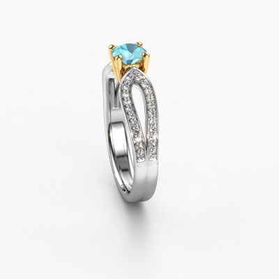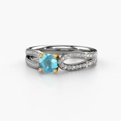Der oben gezeigte Weißgold Verlobungsring wird Antonia rnd 2 genannt. Es ist ein Pavé Solitär Ring, da er einen zentralen Edelstein und ein Band mit Pavé-Fassung hat. Der traditionell Pavé Solitär Verlobungsring ist in der Kombination 14 Karat Weißgold mit Gold und ist mit einem rund 5 mm Blau Topas-Mittelstein besetzt und das Band hat eine Pavé-Fassung mit Diamanten. Jedes Schmuckstück wird nur für Sie persönlich hergestellt, mit Liebe zum Detail und Design. Um den zentralen Stein noch mehr zu betonen, hat das Band eine Pavé-Fassung mit weiteren Blau Topas. Durch die offenen Krappen kann das Licht aus mehreren Winkeln auf den Blau Topas treffen und der Blau Topas-Ring funkelt noch mehr. Das obere Foto zeigt die leidenschaftlich handgefertigten Details des Rings. Die hohe Positionierung der Mittelstein ist ein echter Blickfang. Der perfekte Verlobungsring für das Kronjuwel Ihres Lebens!Nachdem Sie Ihre Bestellung aufgegeben haben, beginnen unsere Goldschmiede mit dem kreativen Prozess der Herstellung Ihres Antonia rnd 2 Verlobungsring. Wir haben keine Lager. Das ist vorteilhaft, da diese Kosten nicht an Sie weitergegeben werden. Daher sind wir in der Lage, Schmuck zu außergewöhnlich niedrigen Preisen anzubieten.Haben Sie irgendwo einen bestimmten Verlobungsring gefunden, den Sie Ihrem Liebsten schenken möchten? Sie können uns gerne sagen, was Sie wollen und wir werden Ihr Design in einen Einzigartigen traditionell Verlobungsring verwandeln. Sie können die Entwicklungen Ihres Ringdesigns verfolgen, da wir 3D-Zeichnungen verwenden. Das gibt Ihnen eine realistische Vorschau, wie Ihr Design aussehen wird. Sie können auch einen Dummy vorbestellen. Ein Dummy ist ein Kunststoffring, der nach Ihrem Ringdesign gestaltet werden kann. Sie können ihn anprobieren und prüfen, ob seine Breite und Größe für Sie geeignet sind. Wir senden Ihnen gerne ein unverbindliches Angebot zu einem fairen Preis/Leistungsverhältnis. Sie werden in Anbetracht der Qualität des Rings und der Edelsteine überrascht sein.Um es einfacher zu machen, bieten wir eine kostenlose 30-tägige Rücksendung.