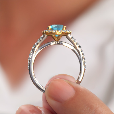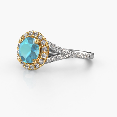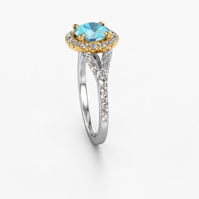 Der oben gezeigte Weißgold Verlobungsring wird Kimber RND genannt. Es ist ein Pavé Solitär Ring, da er einen zentralen Edelstein und ein Band mit Pavé-Fassung hat. Der klassische Pavé Solitär Verlobungsring ist in der Kombination 14 Karat Weißgold mit Gold und ist mit einem rund 7 mm Blau Topas-Mittelstein besetzt und das Band hat eine Pavé-Fassung mit Lab grown Diamant. Jedes Schmuckstück ist um Ihrem Finger Glanz zu verleihen. Jeder Ring wird von unseren Goldschmieden liebevoll von Hand gefertigt. Um den zentralen Stein noch mehr zu betonen, hat das Band eine Pavé-Fassung mit weiteren Blau Topas. Durch die offenen Krappen kann das Licht aus mehreren Winkeln auf den Blau Topas treffen und der Blau Topas-Ring funkelt noch mehr. Das obere Foto zeigt die leidenschaftlich handgefertigten Details des Rings. Die hohe Positionierung der Mittelstein ist ein echter Blickfang. Der perfekte Verlobungsring für das Kronjuwel Ihres Lebens!Nach Erhalt Ihrer Bestellung beginnen unsere Goldschmiede mit Leidenschaft den kreativen Prozess und fertigen Ihren Verlobungsring in unserem eigenen Studio. Da wir keine großen Lager haben, werden diese Kosten nicht an Sie weitergegeben. Unsere Preisgestaltung ist der Beweis dafür! Wir bieten Schmuck zum niedrigsten Preis, garantiert.Unser Team fügt unserer Online-Kollektion täglich neue Designs hinzu. Unsere Designer und Goldschmiede arbeiten zusammen, um das beste Design zu kreieren. Wir bemühen uns, eine vielfältige Kollektion von Schmuckstücken anzubieten. Vielleicht haben Sie ein bestimmtes Design im Sinn. Eines, dass Sie irgendwo gesehen haben. Gerne geben wir Ihnen eine kostenlose Beratung. Wir machen Ihnen ein Angebot, basierend auf einem fairen Preis/Leistungsverhältnis, das Sie verblüffen wird.Um es einfacher zu machen, bieten wir eine kostenlose 30-tägige Rücksendung.