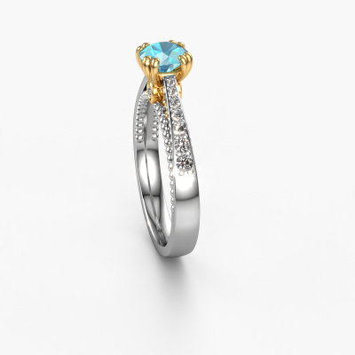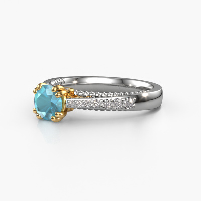 Der oben gezeigte Weißgold Verlobungsring wird Rozella genannt. Es ist ein Pavé Solitär Ring, da er einen zentralen Edelstein und ein Band mit Pavé-Fassung hat. Der einzigartige Pavé Solitär Verlobungsring ist in der Kombination 14 Karat Weißgold mit Gold und ist mit einem rund 5.5 mm Blau Topas-Mittelstein besetzt und das Band hat eine Pavé-Fassung mit Lab grown Diamant. Jedes Schmuckstück lässt Ihren Finger erstrahlen. Ihr Ring ist mit Liebe von unseren Goldschmieden handgefertigt. Um den zentralen Stein noch mehr zu betonen, hat das Band eine Pavé-Fassung mit weiteren Blau Topas. Durch die offenen Krappen kann das Licht aus mehreren Winkeln auf den Blau Topas treffen und der Blau Topas-Ring funkelt noch mehr. Das obere Foto zeigt die leidenschaftlich handgefertigten Details des Rings. Die hohe Positionierung der Mittelstein ist ein echter Blickfang. Der perfekte Verlobungsring für das Kronjuwel Ihres Lebens!Nachdem Sie Ihre Bestellung aufgegeben haben, beginnen unsere Goldschmiede mit dem kreativen Prozess der Herstellung Ihres Rozella Verlobungsring. Wir haben keine Lager. Das ist vorteilhaft, da diese Kosten nicht an Sie weitergegeben werden. Daher sind wir in der Lage, Schmuck zu außergewöhnlich niedrigen Preisen anzubieten.Unsere Designer und Goldschmiede arbeiten jeden Tag zusammen und versuchen, neue Schmuckstücke zu kreieren. Vielleicht haben Sie irgendwo einen schönen, einzigartige Verlobungsring gefunden, nach dem Ihr einzigartiger Ring gestaltet werden kann. Setzen Sie sich mit uns in Verbindung. Wir machen Ihnen ein Angebot, basierend auf einem fairen Preis/Leistungsverhältnis, das Sie begeistern wird.Um es einfacher zu machen, bieten wir eine kostenlose 30-tägige Rücksendung.