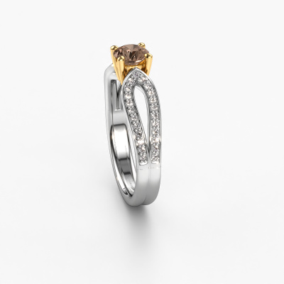 Der oben gezeigte Weißgold Verlobungsring wird Antonia rnd 2 genannt. Es ist ein Pavé Solitär Ring, da er einen zentralen Edelstein und ein Band mit Pavé-Fassung hat. Der traditionell Pavé Solitär Verlobungsring ist in der Kombination 14 Karat Weißgold mit Gold und ist mit einem rund 0.50 crt Braun Diamant-Mittelstein besetzt und das Band hat eine Pavé-Fassung mit Diamanten. Jedes Schmuckstück wird nur für Sie persönlich hergestellt, mit Liebe zum Detail und Design. Um den zentralen Stein noch mehr zu betonen, hat das Band eine Pavé-Fassung mit weiteren Braun Diamant. Durch die offenen Krappen kann das Licht aus mehreren Winkeln auf den Braun Diamant treffen und der Braun Diamant-Ring funkelt noch mehr. Das obere Foto zeigt die leidenschaftlich handgefertigten Details des Rings. Die hohe Positionierung der Mittelstein ist ein echter Blickfang. Der perfekte Verlobungsring für das Kronjuwel Ihres Lebens!Nachdem Sie Ihre Bestellung aufgegeben haben, beginnen unsere Goldschmiede mit dem kreativen Prozess der Herstellung Ihres Antonia rnd 2 Verlobungsring. Wir haben keine Lager. Das ist vorteilhaft, da diese Kosten nicht an Sie weitergegeben werden. Daher sind wir in der Lage, Schmuck zu außergewöhnlich niedrigen Preisen anzubieten.Haben Sie irgendwo einen bestimmten Verlobungsring gefunden, den Sie Ihrem Liebsten schenken möchten? Sie können uns gerne sagen, was Sie wollen und wir werden Ihr Design in einen Einzigartigen traditionell Verlobungsring verwandeln. Sie können die Entwicklungen Ihres Ringdesigns verfolgen, da wir 3D-Zeichnungen verwenden. Das gibt Ihnen eine realistische Vorschau, wie Ihr Design aussehen wird. Sie können auch einen Dummy vorbestellen. Ein Dummy ist ein Kunststoffring, der nach Ihrem Ringdesign gestaltet werden kann. Sie können ihn anprobieren und prüfen, ob seine Breite und Größe für Sie geeignet sind. Wir senden Ihnen gerne ein unverbindliches Angebot zu einem fairen Preis/Leistungsverhältnis. Sie werden in Anbetracht der Qualität des Rings und der Edelsteine überrascht sein.Um es einfacher zu machen, bieten wir eine kostenlose 30-tägige Rücksendung.