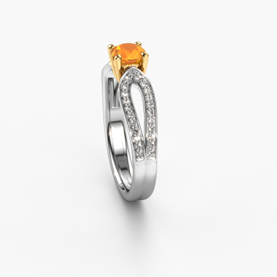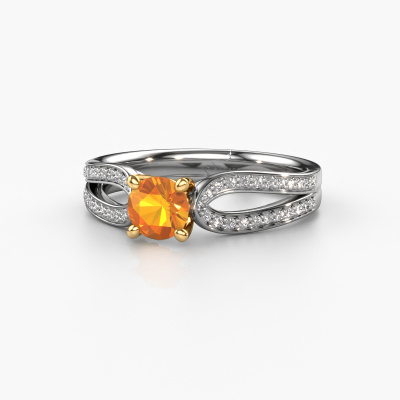Der oben gezeigte Weißgold Verlobungsring wird Antonia rnd 2 genannt. Es ist ein Pavé Solitär Ring, da er einen zentralen Edelstein und ein Band mit Pavé-Fassung hat. Der traditionell Pavé Solitär Verlobungsring ist in der Kombination 14 Karat Weißgold mit Gold und ist mit einem rund 5 mm Citrin-Mittelstein besetzt und das Band hat eine Pavé-Fassung mit Diamanten. Jedes Schmuckstück wird nur für Sie persönlich hergestellt, mit Liebe zum Detail und Design. Um den zentralen Stein noch mehr zu betonen, hat das Band eine Pavé-Fassung mit weiteren Citrin. Durch die offenen Krappen kann das Licht aus mehreren Winkeln auf den Citrin treffen und der Citrin-Ring funkelt noch mehr. Das obere Foto zeigt die leidenschaftlich handgefertigten Details des Rings. Die hohe Positionierung der Mittelstein ist ein echter Blickfang. Der perfekte Verlobungsring für das Kronjuwel Ihres Lebens!Nachdem Sie Ihre Bestellung aufgegeben haben, beginnen unsere Goldschmiede mit dem kreativen Prozess der Herstellung Ihres Antonia rnd 2 Verlobungsring. Wir haben keine Lager. Das ist vorteilhaft, da diese Kosten nicht an Sie weitergegeben werden. Daher sind wir in der Lage, Schmuck zu außergewöhnlich niedrigen Preisen anzubieten.Haben Sie irgendwo einen bestimmten Verlobungsring gefunden, den Sie Ihrem Liebsten schenken möchten? Sie können uns gerne sagen, was Sie wollen und wir werden Ihr Design in einen Einzigartigen traditionell Verlobungsring verwandeln. Sie können die Entwicklungen Ihres Ringdesigns verfolgen, da wir 3D-Zeichnungen verwenden. Das gibt Ihnen eine realistische Vorschau, wie Ihr Design aussehen wird. Sie können auch einen Dummy vorbestellen. Ein Dummy ist ein Kunststoffring, der nach Ihrem Ringdesign gestaltet werden kann. Sie können ihn anprobieren und prüfen, ob seine Breite und Größe für Sie geeignet sind. Wir senden Ihnen gerne ein unverbindliches Angebot zu einem fairen Preis/Leistungsverhältnis. Sie werden in Anbetracht der Qualität des Rings und der Edelsteine überrascht sein.Um es einfacher zu machen, bieten wir eine kostenlose 30-tägige Rücksendung.