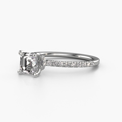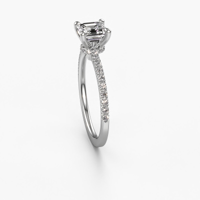 Der oben gezeigte Weißgold Verlobungsring wird Crystal ASSC 4 genannt. Es ist ein Pavé Solitär Ring, da er einen zentralen Edelstein und ein Band mit Pavé-Fassung hat. Der exklusive Pavé Solitär Verlobungsring ist in der Kombination 14 Karat Weißgold mit Weißgold und ist mit einem asscher 1.00 crt Diamant-Mittelstein besetzt und das Band hat eine Pavé-Fassung mit Diamanten. Jedes Schmuckstück wird hergestellt mit Leidenschaft und Liebe, von einem unserer Meister-Goldschmiede. Um den zentralen Stein noch mehr zu betonen, hat das Band eine Pavé-Fassung mit weiteren Diamant. Durch die offenen Krappen kann das Licht aus mehreren Winkeln auf den Diamant treffen und der Diamant-Ring funkelt noch mehr. Das obere Foto zeigt die leidenschaftlich handgefertigten Details des Rings. Die hohe Positionierung der Mittelstein ist ein echter Blickfang. Der perfekte Verlobungsring für das Kronjuwel Ihres Lebens!Durch die Kombination modernster Technik mit uralter Handwerkskunst können wir alle Verlobungsringe in unserem eigenen Studio anfertigen. Jedes Schmuckstück wird auf Anfrage gefertigt. Das ist vorteilhaft, weil wir Ihnen dadurch einen Preis anbieten können, den Sie nirgendwo anders finden.Unser Team fügt unserer Online-Kollektion täglich neue Designs hinzu. Unsere Designer und Goldschmiede arbeiten zusammen, um das beste Design zu kreieren. Wir bemühen uns, eine vielfältige Kollektion von Schmuckstücken anzubieten. Vielleicht haben Sie ein bestimmtes Design im Sinn. Eines, dass Sie irgendwo gesehen haben. Gerne geben wir Ihnen eine kostenlose Beratung. Wir machen Ihnen ein Angebot, basierend auf einem fairen Preis/Leistungsverhältnis, das Sie verblüffen wird.Um es einfacher zu machen, bieten wir eine kostenlose 30-tägige Rücksendung.
