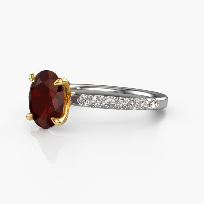 Der oben gezeigte Weißgold Verlobungsring wird Crystal OVL 2 genannt. Es ist ein Pavé Solitär Ring, da er einen zentralen Edelstein und ein Band mit Pavé-Fassung hat. Der exklusive Pavé Solitär Verlobungsring ist in der Kombination 14 Karat Weißgold mit Gold und ist mit einem oval 9x7 mm Granat-Mittelstein besetzt und das Band hat eine Pavé-Fassung mit Lab grown Diamant. Jedes Schmuckstück wird von unseren Meister-Goldschmieden in unserem eigenen Studio für Sie gefertigt. Um den zentralen Stein noch mehr zu betonen, hat das Band eine Pavé-Fassung mit weiteren Granat. Durch die offenen Krappen kann das Licht aus mehreren Winkeln auf den Granat treffen und der Granat-Ring funkelt noch mehr. Das obere Foto zeigt die leidenschaftlich handgefertigten Details des Rings. Die hohe Positionierung der Mittelstein ist ein echter Blickfang. Der perfekte Verlobungsring für das Kronjuwel Ihres Lebens!Durch die Kombination modernster Technik mit uralter Handwerkskunst können wir alle Verlobungsringe in unserem eigenen Studio anfertigen. Jedes Schmuckstück wird auf Anfrage gefertigt. Das ist vorteilhaft, weil wir Ihnen dadurch einen Preis anbieten können, den Sie nirgendwo anders finden.Unser Team fügt unserer Online-Kollektion täglich neue Designs hinzu. Unsere Designer und Goldschmiede arbeiten zusammen, um das beste Design zu kreieren. Wir bemühen uns, eine vielfältige Kollektion von Schmuckstücken anzubieten. Vielleicht haben Sie ein bestimmtes Design im Sinn. Eines, dass Sie irgendwo gesehen haben. Gerne geben wir Ihnen eine kostenlose Beratung. Wir machen Ihnen ein Angebot, basierend auf einem fairen Preis/Leistungsverhältnis, das Sie verblüffen wird.Um es einfacher zu machen, bieten wir eine kostenlose 30-tägige Rücksendung.