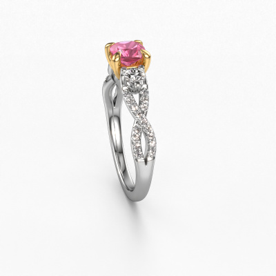 Der oben gezeigte Weißgold Verlobungsring wird Marilou CUS genannt. Es ist ein 3-stone Ring, da er einen zentralen Edelstein und ein Band mit Pavé-Fassung hat. Der traditionell 3-stone Verlobungsring ist in der Kombination 14 Karat Weißgold mit Gold und ist mit einem cussion 5 mm Pink Saphir-Mittelstein besetzt und das Band hat eine Pavé-Fassung mit Diamanten. Jedes Schmuckstück ist einzigartig in jeder Hinsicht! Einfach nach Ihren Wünschen anzupassen. Um den zentralen Stein noch mehr zu betonen, hat das Band eine Pavé-Fassung mit weiteren Pink Saphir. Durch die offenen Krappen kann das Licht aus mehreren Winkeln auf den Pink Saphir treffen und der Pink Saphir-Ring funkelt noch mehr. Das obere Foto zeigt die leidenschaftlich handgefertigten Details des Rings. Die hohe Positionierung der Mittelstein ist ein echter Blickfang. Der perfekte Verlobungsring für das Kronjuwel Ihres Lebens!Durch die Kombination modernster Technik mit uralter Handwerkskunst können wir alle Verlobungsringe in unserem eigenen Studio anfertigen. Jedes Schmuckstück wird auf Anfrage gefertigt. Das ist vorteilhaft, weil wir Ihnen dadurch einen Preis anbieten können, den Sie nirgendwo anders finden.Unser Team fügt unserer Online-Kollektion täglich neue Designs hinzu. Unsere Designer und Goldschmiede arbeiten zusammen, um das beste Design zu kreieren. Wir bemühen uns, eine vielfältige Kollektion von Schmuckstücken anzubieten. Vielleicht haben Sie ein bestimmtes Design im Sinn. Eines, dass Sie irgendwo gesehen haben. Gerne geben wir Ihnen eine kostenlose Beratung. Wir machen Ihnen ein Angebot, basierend auf einem fairen Preis/Leistungsverhältnis, das Sie verblüffen wird.Um es einfacher zu machen, bieten wir eine kostenlose 30-tägige Rücksendung.