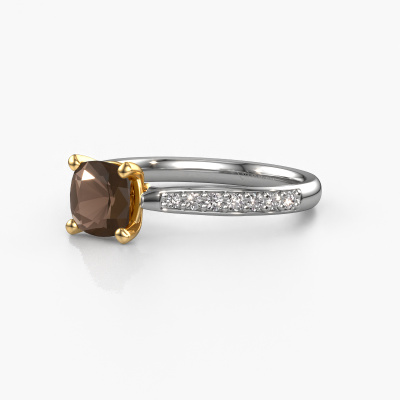 Der oben gezeigte Weißgold Verlobungsring wird Mignon cus 2 genannt. Es ist ein Pavé Solitär Ring, da er einen zentralen Edelstein und ein Band mit Pavé-Fassung hat. Der exklusive Pavé Solitär Verlobungsring ist in der Kombination 14 Karat Weißgold mit Gold und ist mit einem cussion 6 mm Rauchquarz-Mittelstein besetzt und das Band hat eine Pavé-Fassung mit Lab grown Diamant. Jedes Schmuckstück wird hergestellt mit Leidenschaft und Liebe, von einem unserer Meister-Goldschmiede. Um den zentralen Stein noch mehr zu betonen, hat das Band eine Pavé-Fassung mit weiteren Rauchquarz. Durch die offenen Krappen kann das Licht aus mehreren Winkeln auf den Rauchquarz treffen und der Rauchquarz-Ring funkelt noch mehr. Das obere Foto zeigt die leidenschaftlich handgefertigten Details des Rings. Die hohe Positionierung der Mittelstein ist ein echter Blickfang. Der perfekte Verlobungsring für das Kronjuwel Ihres Lebens!Nachdem Sie Ihre Bestellung aufgegeben haben, beginnen unsere Goldschmiede mit dem kreativen Prozess der Herstellung Ihres Mignon cus 2 Verlobungsring. Wir haben keine Lager. Das ist vorteilhaft, da diese Kosten nicht an Sie weitergegeben werden. Daher sind wir in der Lage, Schmuck zu außergewöhnlich niedrigen Preisen anzubieten.Unser Team fügt unserer Online-Kollektion täglich neue Designs hinzu. Unsere Designer und Goldschmiede arbeiten zusammen, um das beste Design zu kreieren. Wir bemühen uns, eine vielfältige Kollektion von Schmuckstücken anzubieten. Vielleicht haben Sie ein bestimmtes Design im Sinn. Eines, dass Sie irgendwo gesehen haben. Gerne geben wir Ihnen eine kostenlose Beratung. Wir machen Ihnen ein Angebot, basierend auf einem fairen Preis/Leistungsverhältnis, das Sie verblüffen wird.Um es einfacher zu machen, bieten wir eine kostenlose 30-tägige Rücksendung.