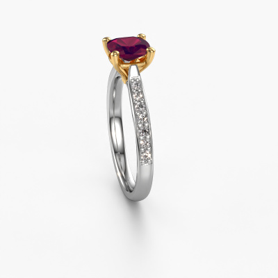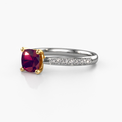 Der oben gezeigte Weißgold Verlobungsring wird Mignon cus 2 genannt. Es ist ein Pavé Solitär Ring, da er einen zentralen Edelstein und ein Band mit Pavé-Fassung hat. Der exklusive Pavé Solitär Verlobungsring ist in der Kombination 14 Karat Weißgold mit Gold und ist mit einem cussion 6 mm Rhodolit-Mittelstein besetzt und das Band hat eine Pavé-Fassung mit Lab grown Diamant. Jedes Schmuckstück wird hergestellt mit Leidenschaft und Liebe, von einem unserer Meister-Goldschmiede. Um den zentralen Stein noch mehr zu betonen, hat das Band eine Pavé-Fassung mit weiteren Rhodolit. Durch die offenen Krappen kann das Licht aus mehreren Winkeln auf den Rhodolit treffen und der Rhodolit-Ring funkelt noch mehr. Das obere Foto zeigt die leidenschaftlich handgefertigten Details des Rings. Die hohe Positionierung der Mittelstein ist ein echter Blickfang. Der perfekte Verlobungsring für das Kronjuwel Ihres Lebens!Nachdem Sie Ihre Bestellung aufgegeben haben, beginnen unsere Goldschmiede mit dem kreativen Prozess der Herstellung Ihres Mignon cus 2 Verlobungsring. Wir haben keine Lager. Das ist vorteilhaft, da diese Kosten nicht an Sie weitergegeben werden. Daher sind wir in der Lage, Schmuck zu außergewöhnlich niedrigen Preisen anzubieten.Unser Team fügt unserer Online-Kollektion täglich neue Designs hinzu. Unsere Designer und Goldschmiede arbeiten zusammen, um das beste Design zu kreieren. Wir bemühen uns, eine vielfältige Kollektion von Schmuckstücken anzubieten. Vielleicht haben Sie ein bestimmtes Design im Sinn. Eines, dass Sie irgendwo gesehen haben. Gerne geben wir Ihnen eine kostenlose Beratung. Wir machen Ihnen ein Angebot, basierend auf einem fairen Preis/Leistungsverhältnis, das Sie verblüffen wird.Um es einfacher zu machen, bieten wir eine kostenlose 30-tägige Rücksendung.