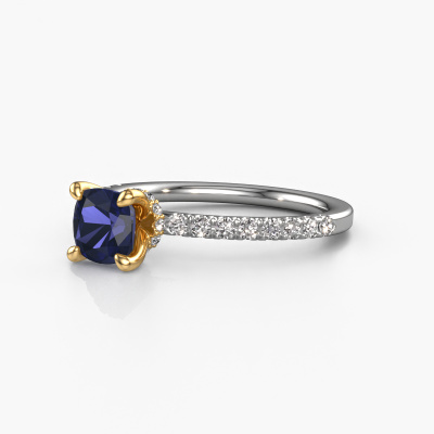 Der oben gezeigte Weißgold Verlobungsring wird Crystal CUS 4 genannt. Es ist ein Pavé Solitär Ring, da er einen zentralen Edelstein und ein Band mit Pavé-Fassung hat. Der schicke Pavé Solitär Verlobungsring ist in der Kombination 14 Karat Weißgold mit Gold und ist mit einem cussion 5.5 mm Saphir-Mittelstein besetzt und das Band hat eine Pavé-Fassung mit Diamanten. Jedes Schmuckstück ist um Ihrem Finger Glanz zu verleihen. Jeder Ring wird von unseren Goldschmieden liebevoll von Hand gefertigt. Um den zentralen Stein noch mehr zu betonen, hat das Band eine Pavé-Fassung mit weiteren Saphir. Durch die offenen Krappen kann das Licht aus mehreren Winkeln auf den Saphir treffen und der Saphir-Ring funkelt noch mehr. Das obere Foto zeigt die leidenschaftlich handgefertigten Details des Rings. Die hohe Positionierung der Mittelstein ist ein echter Blickfang. Der perfekte Verlobungsring für das Kronjuwel Ihres Lebens!Mit unserer modernen Technik können wir Schmuckstücke von höchster Qualität mit größter Sorgfalt für Sie entwerfen und anpassen. Unsere Verlobungsringe sind immer um 30 Prozent günstiger als bei anderen Juwelieren. Wir fertigen Verlobungsringe auf Bestellung, also müssen wir keine großen Lager unterhalten. Wenn Sie ein bestimmtes Budget haben, beraten wir Sie gerne entsprechend.Haben Sie einen bestimmten Ring im Sinn? Eines, dass Sie irgendwo gesehen haben. Bitte zögern Sie nicht, uns zu sagen, was Sie wollen und wir werden Ihr Design in einen Einzigartigen Verlobungsring verwandeln. Sie können die Entwicklungen Ihres Ringdesigns verfolgen, da wir 3D-Zeichnungen verwenden. Das gibt Ihnen eine realistische Vorschau Ihres Designs. Wir senden Ihnen gerne ein unverbindliches Angebot zu einem fairen Preis/Leistungsverhältnis. Es wird Sie erstaunen.Um es einfacher zu machen, bieten wir eine kostenlose 30-tägige Rücksendung.