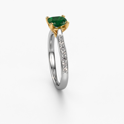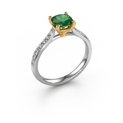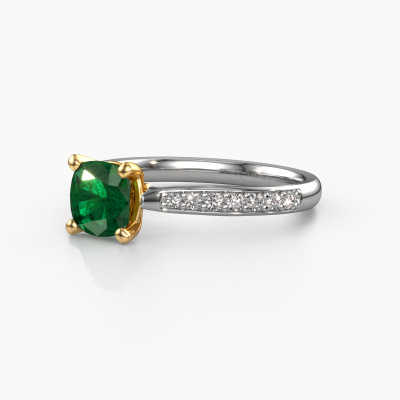 Der oben gezeigte Weißgold Verlobungsring wird Mignon cus 2 genannt. Es ist ein Pavé Solitär Ring, da er einen zentralen Edelstein und ein Band mit Pavé-Fassung hat. Der exklusive Pavé Solitär Verlobungsring ist in der Kombination 14 Karat Weißgold mit Gold und ist mit einem cussion 6 mm Smaragd-Mittelstein besetzt und das Band hat eine Pavé-Fassung mit Lab grown Diamant. Jedes Schmuckstück wird hergestellt mit Leidenschaft und Liebe, von einem unserer Meister-Goldschmiede. Um den zentralen Stein noch mehr zu betonen, hat das Band eine Pavé-Fassung mit weiteren Smaragd. Durch die offenen Krappen kann das Licht aus mehreren Winkeln auf den Smaragd treffen und der Smaragd-Ring funkelt noch mehr. Das obere Foto zeigt die leidenschaftlich handgefertigten Details des Rings. Die hohe Positionierung der Mittelstein ist ein echter Blickfang. Der perfekte Verlobungsring für das Kronjuwel Ihres Lebens!Nachdem Sie Ihre Bestellung aufgegeben haben, beginnen unsere Goldschmiede mit dem kreativen Prozess der Herstellung Ihres Mignon cus 2 Verlobungsring. Wir haben keine Lager. Das ist vorteilhaft, da diese Kosten nicht an Sie weitergegeben werden. Daher sind wir in der Lage, Schmuck zu außergewöhnlich niedrigen Preisen anzubieten.Unser Team fügt unserer Online-Kollektion täglich neue Designs hinzu. Unsere Designer und Goldschmiede arbeiten zusammen, um das beste Design zu kreieren. Wir bemühen uns, eine vielfältige Kollektion von Schmuckstücken anzubieten. Vielleicht haben Sie ein bestimmtes Design im Sinn. Eines, dass Sie irgendwo gesehen haben. Gerne geben wir Ihnen eine kostenlose Beratung. Wir machen Ihnen ein Angebot, basierend auf einem fairen Preis/Leistungsverhältnis, das Sie verblüffen wird.Um es einfacher zu machen, bieten wir eine kostenlose 30-tägige Rücksendung.
