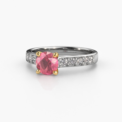 Der oben gezeigte Weißgold Verlobungsring wird Valorie RND 2 genannt. Es ist ein Pavé Solitär Ring, da er einen zentralen Edelstein und ein Band mit Pavé-Fassung hat. Der moderne Pavé Solitär Verlobungsring ist in der Kombination 14 Karat Weißgold mit Gold und ist mit einem rund 6.5 mm Turmalin rosa-Mittelstein besetzt und das Band hat eine Pavé-Fassung mit Lab grown Diamant. Jedes Schmuckstück wird nur für Sie persönlich hergestellt, mit Liebe zum Detail und Design. Um den zentralen Stein noch mehr zu betonen, hat das Band eine Pavé-Fassung mit weiteren Turmalin rosa. Durch die offenen Krappen kann das Licht aus mehreren Winkeln auf den Turmalin rosa treffen und der Turmalin rosa-Ring funkelt noch mehr. Das obere Foto zeigt die leidenschaftlich handgefertigten Details des Rings. Die hohe Positionierung der Mittelstein ist ein echter Blickfang. Der perfekte Verlobungsring für das Kronjuwel Ihres Lebens!Mit unserer modernen Technik können wir Schmuckstücke von höchster Qualität mit größter Sorgfalt für Sie entwerfen und anpassen. Unsere Verlobungsringe sind immer um 30 Prozent günstiger als bei anderen Juwelieren. Wir fertigen Verlobungsringe auf Bestellung, also müssen wir keine großen Lager unterhalten. Wenn Sie ein bestimmtes Budget haben, beraten wir Sie gerne entsprechend.Unsere Designer und Goldschmiede arbeiten jeden Tag zusammen und versuchen, neue Schmuckstücke zu kreieren. Vielleicht haben Sie irgendwo einen schönen, moderne Verlobungsring gefunden, nach dem Ihr einzigartiger Ring gestaltet werden kann. Setzen Sie sich mit uns in Verbindung. Wir machen Ihnen ein Angebot, basierend auf einem fairen Preis/Leistungsverhältnis, das Sie begeistern wird.Um es einfacher zu machen, bieten wir eine kostenlose 30-tägige Rücksendung.