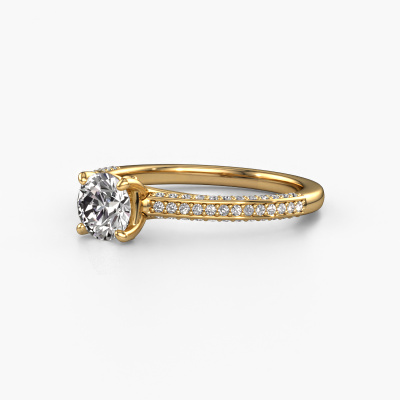 Der oben gezeigte Ring wird Elenore rnd genannt. Es ist ein Pavé Solitär Ring, da er einen zentralen Edelstein und ein Band mit Pavé-Fassung hat. Dieser 14 Karat Gold ring ist mit einem 5.4 mm rund Zirkonia-Mittelstein besetzt und das Band hat eine Pavé-Fassung mit Lab grown Diamant. Jedes Schmuckstück wird von unseren Meister-Goldschmieden in unserem eigenen Studio für Sie gefertigt.Dieser exklusive Gold Pavé Solitär Verlobungsring mit Pavé-Fassung hat einen exquisiten, rund Zirkonia als Mittelstein. Um den zentralen Stein noch mehr zu betonen, hat das Band eine Pavé-Fassung mit weiteren Lab grown Diamant. Durch die offenen Krappen kann das Licht aus mehreren Winkeln auf den Zirkonia treffen und der Zirkonia-Ring funkelt noch mehr. Das obere Foto zeigt die leidenschaftlich handgefertigten Details des Rings. Die hohe Positionierung der Mittelstein ist ein echter Blickfang. Der perfekte Verlobungsring für das Kronjuwel Ihres Lebens!Durch die Kombination modernster Technik mit uralter Handwerkskunst können wir alle Verlobungsringe in unserem eigenen Studio anfertigen. Jedes Schmuckstück wird auf Anfrage gefertigt. Das ist vorteilhaft, weil wir Ihnen dadurch einen Preis anbieten können, den Sie nirgendwo anders finden.Haben Sie irgendwo einen bestimmten Verlobungsring gefunden, den Sie Ihrem Liebsten schenken möchten? Sie können uns gerne sagen, was Sie wollen und wir werden Ihr Design in einen Einzigartigen exklusive Verlobungsring verwandeln. Sie können die Entwicklungen Ihres Ringdesigns verfolgen, da wir 3D-Zeichnungen verwenden. Das gibt Ihnen eine realistische Vorschau, wie Ihr Design aussehen wird. Sie können auch einen Dummy vorbestellen. Ein Dummy ist ein Kunststoffring, der nach Ihrem Ringdesign gestaltet werden kann. Sie können ihn anprobieren und prüfen, ob seine Breite und Größe für Sie geeignet sind. Wir senden Ihnen gerne ein unverbindliches Angebot zu einem fairen Preis/Leistungsverhältnis. Sie werden in Anbetracht der Qualität des Rings und der Edelsteine überrascht sein.Um es einfacher zu machen, bieten wir eine kostenlose 30-tägige Rücksendung.
